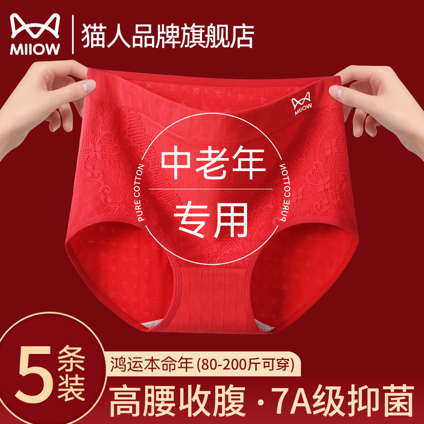 Cat man mom underwear women's natal year big red cotton antibacterial cotton crotch high waist tummy tuck 2025 briefs