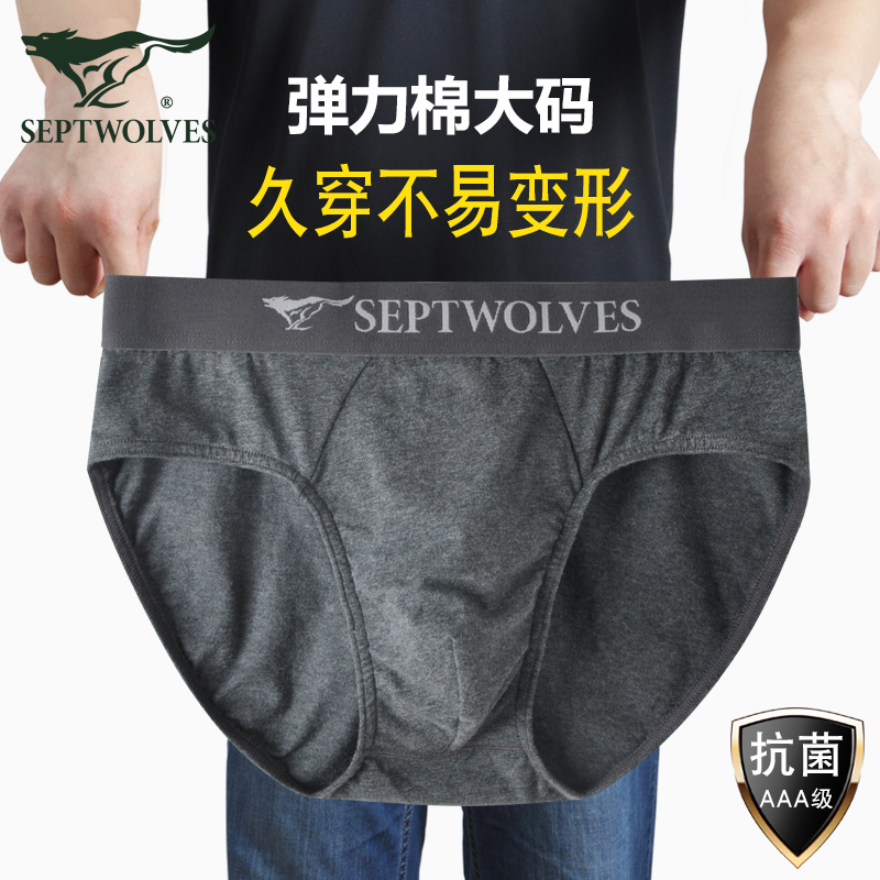 Seven Wolves Men's Underwear Men's Cotton Briefs Antibacterial Stretch Cotton Fat Plus Size Fat Man Shorts Toe
