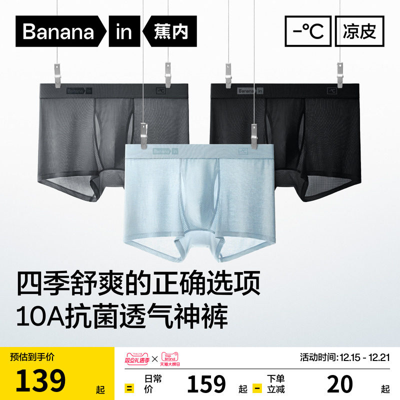 3 pieces banana cool leather 501 Cool men's boxer underwear ice silk modal breathable boxer shorts for boys new