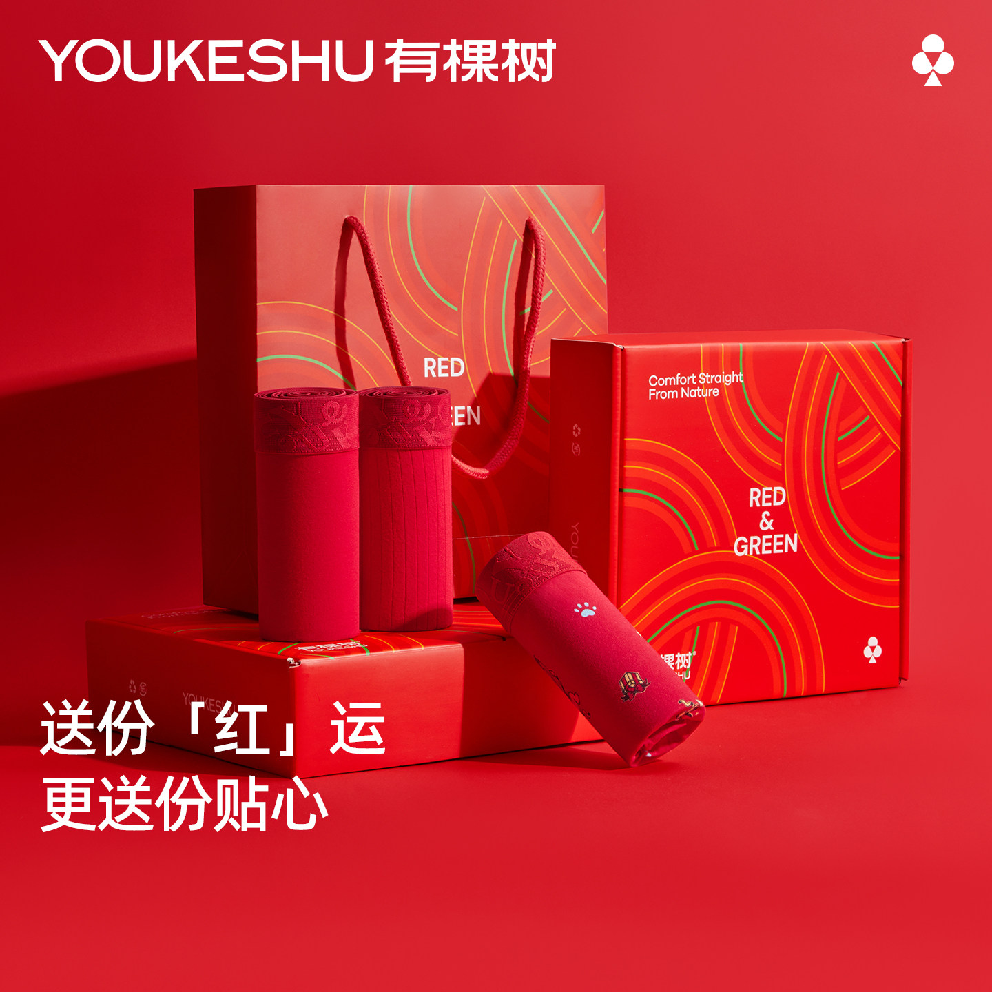 There is a tree natal year men's underwear pure cotton 10A antibacterial crotch red underwear men's boys gift red shorts