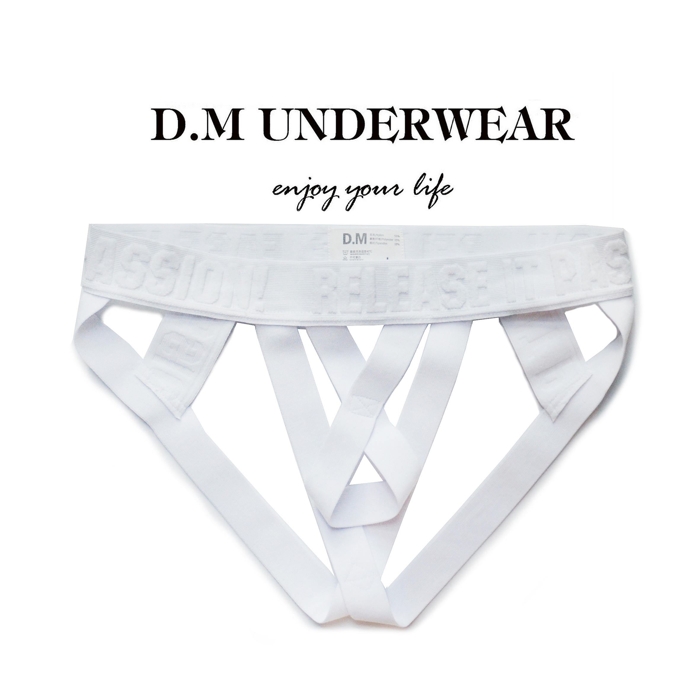 D.M men's underwear double thongs letter convex belt sex thread hollow men's Internet celebrity thong low waist personality