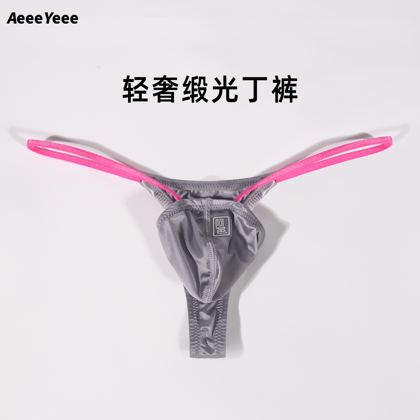 Ayi underwear thong thin strap color-blocking new light luxury satin low-waisted high elastic U convex pocket bag tight youth T-pants