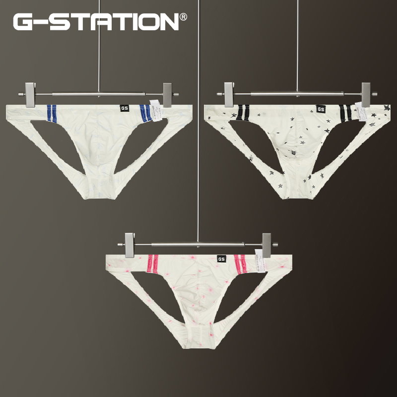 G-STATION ultra-thin high translucent print SP5 men's double thongs sexy back buttocks reveal low-rise T-underwear