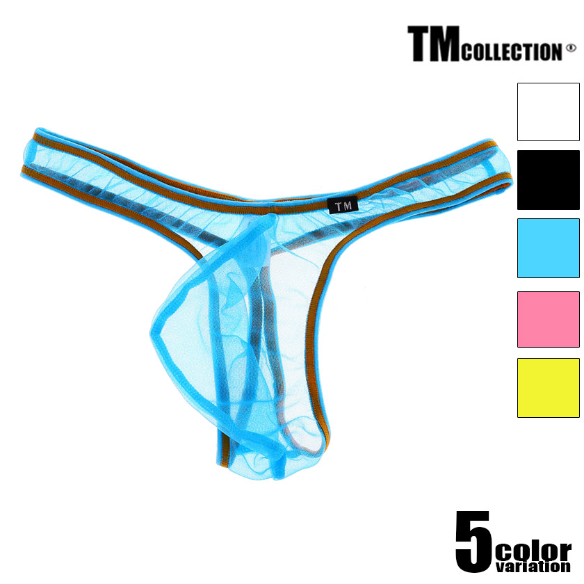 Nissan TM sexy men's thong stretchless sheer mesh 3D pocket contrast trim low-rise skinny t-pants underpants
