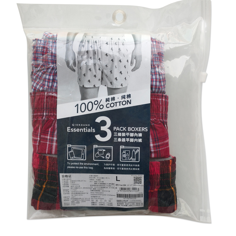 Giordano Men's Boxer Pants Three-Pack Boxer Pants Men's Cotton Plaid Boxer Panties 01179139