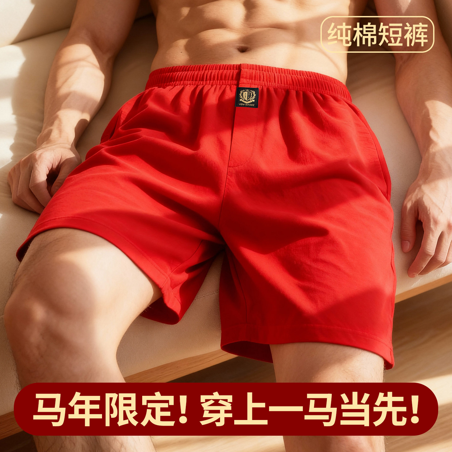 Pure cotton men's underwear for the year of the birth red 2026 Year of the Horse loose and breathable Aro pants wide crotch two-point wedding pants