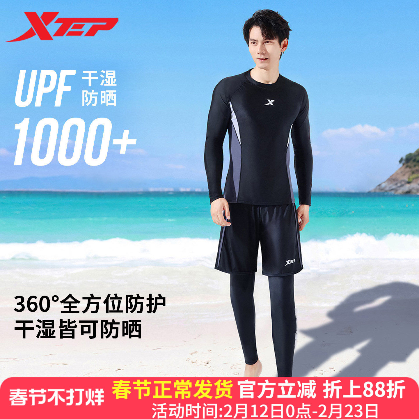 Xtep Men's Swimsuit 2025 New Suit Slimming Quick Drying Long Sleeve Pants Swim Trunks Professional Swimming Wetsuit