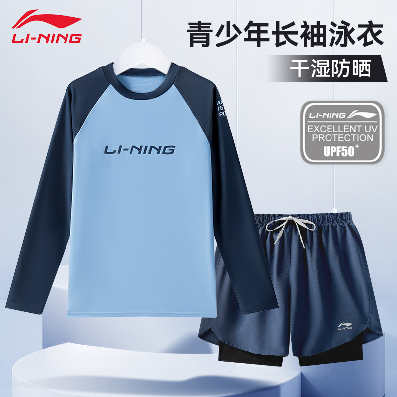 Li Ning swimsuit boys, teenagers, long sleeves, sunscreen, quick-drying, junior high school students, boys' split swimsuits, men's swim trunks set