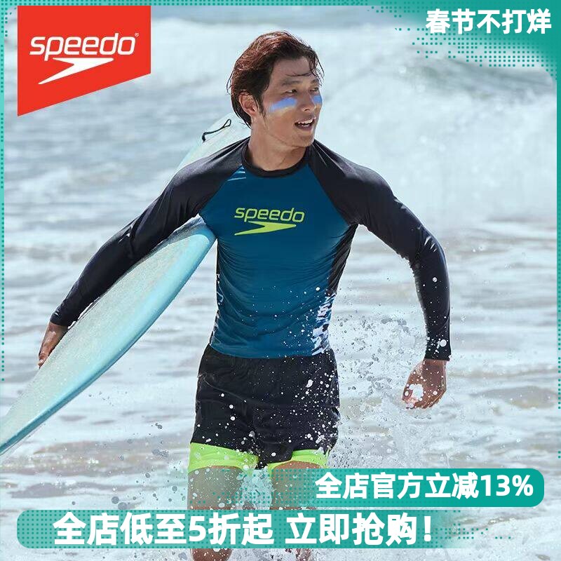 Speedo Men's Swimsuit Long Sleeve Quick Dry Sunscreen Chlorine Anti-Chlorine Hot Spring Vacation Surfing Swimsuit