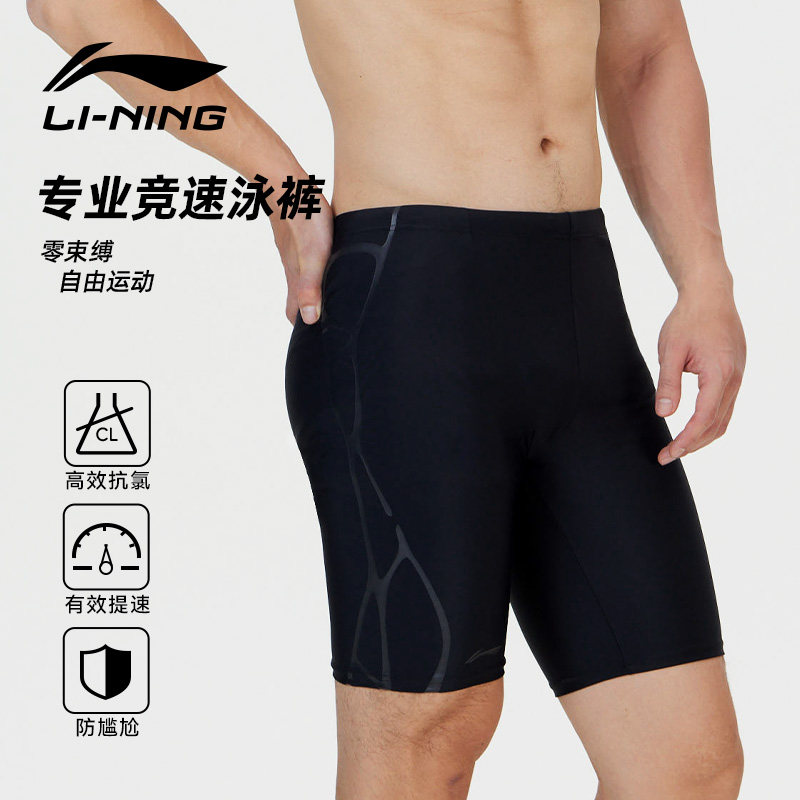 Li Ning swimming trunks men's professional training racing five-point swimming trunks anti-embarrassment men's adult swimming full set of equipment