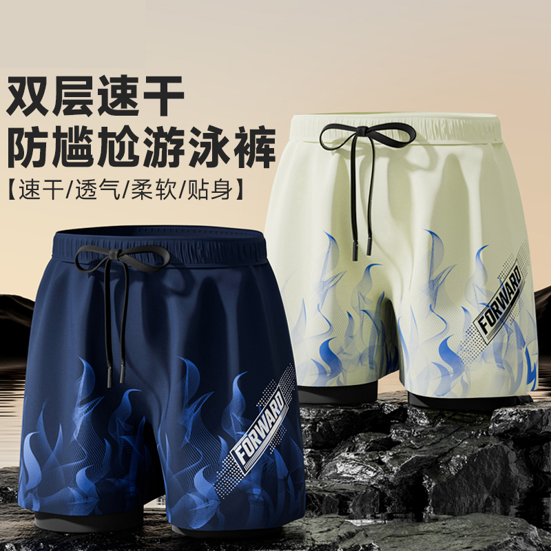 Double fish swimming trunks, men's boxer swimming trunks, men's swimsuits, anti-embarrassment swimsuits, 2024 new swimming full equipment