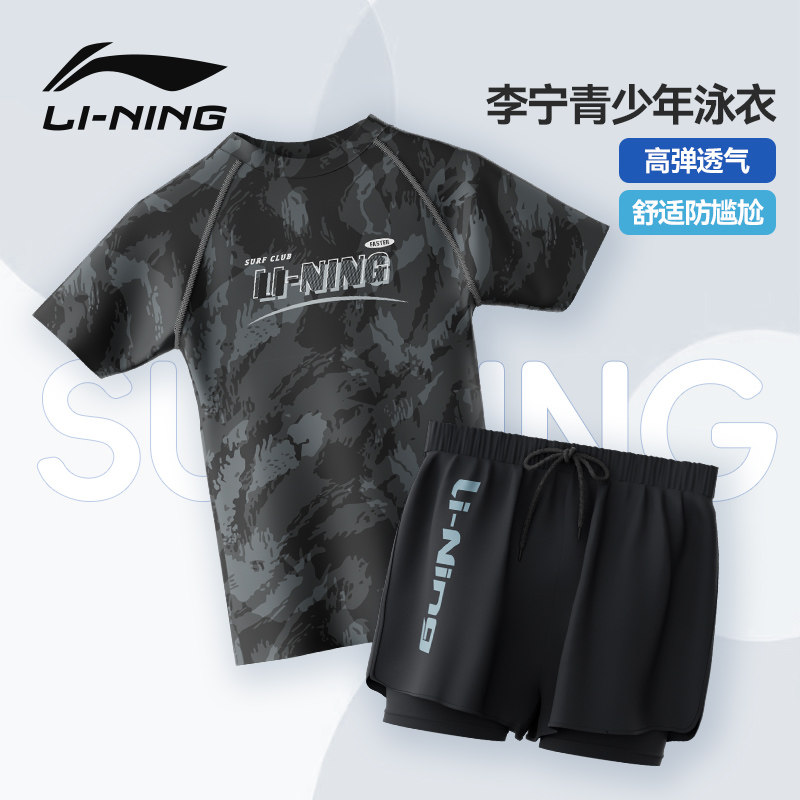 Li Ning Men's Swimsuit Teen Swim Trunks Set Boys Junior High School Students Adult Plus Size Quick Dry Split