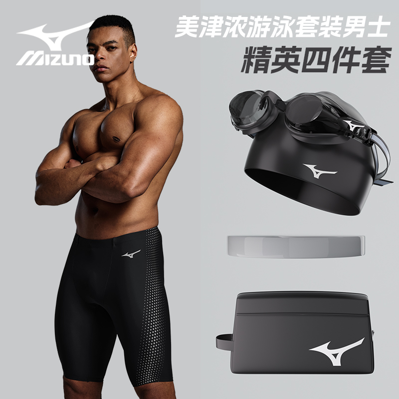 Mizuno men's full set of swimming equipment, swimming goggles, swimming cap, professional racing, five-point adult anti-embarrassment, new swimming trunks