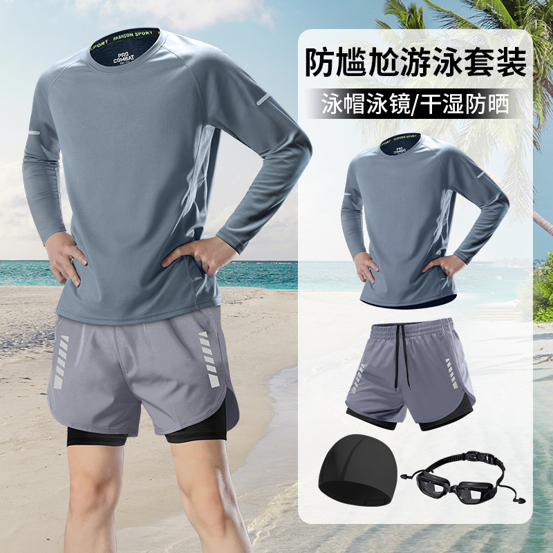 Men's swimsuit set adult sunscreen long sleeve top men's swimming water park teenager anti-embarrassment swim trunks