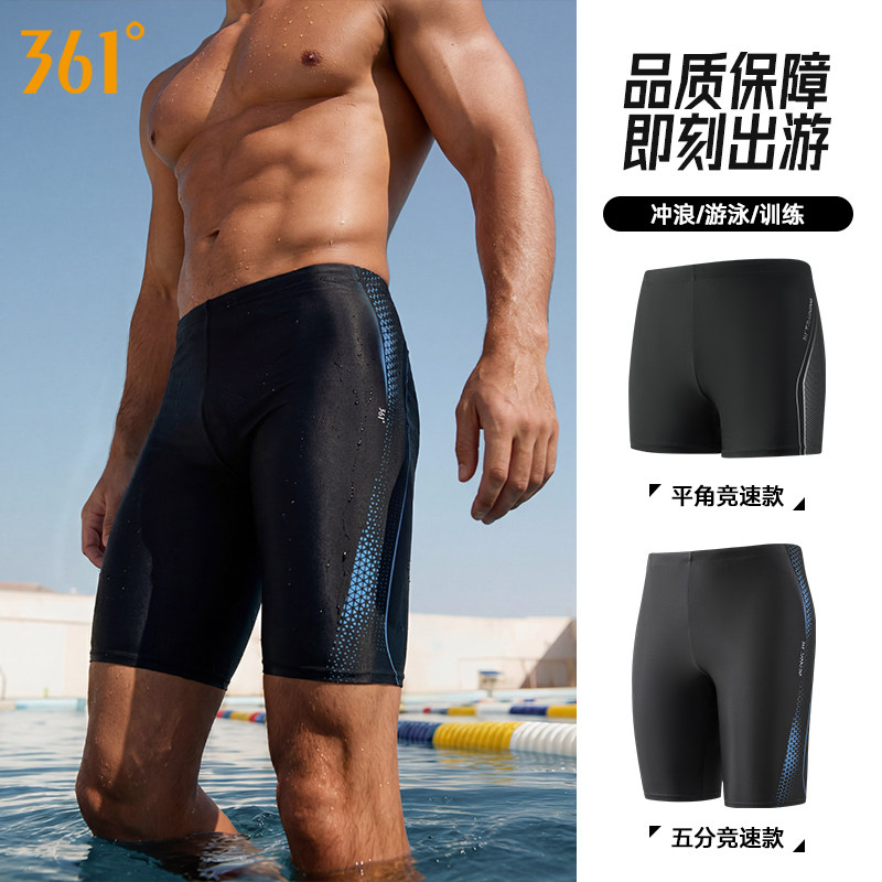 361 five-point racing swimming trunks men's anti-embarrassment knee-length adult youth professional sports swimsuit mirror swim cap