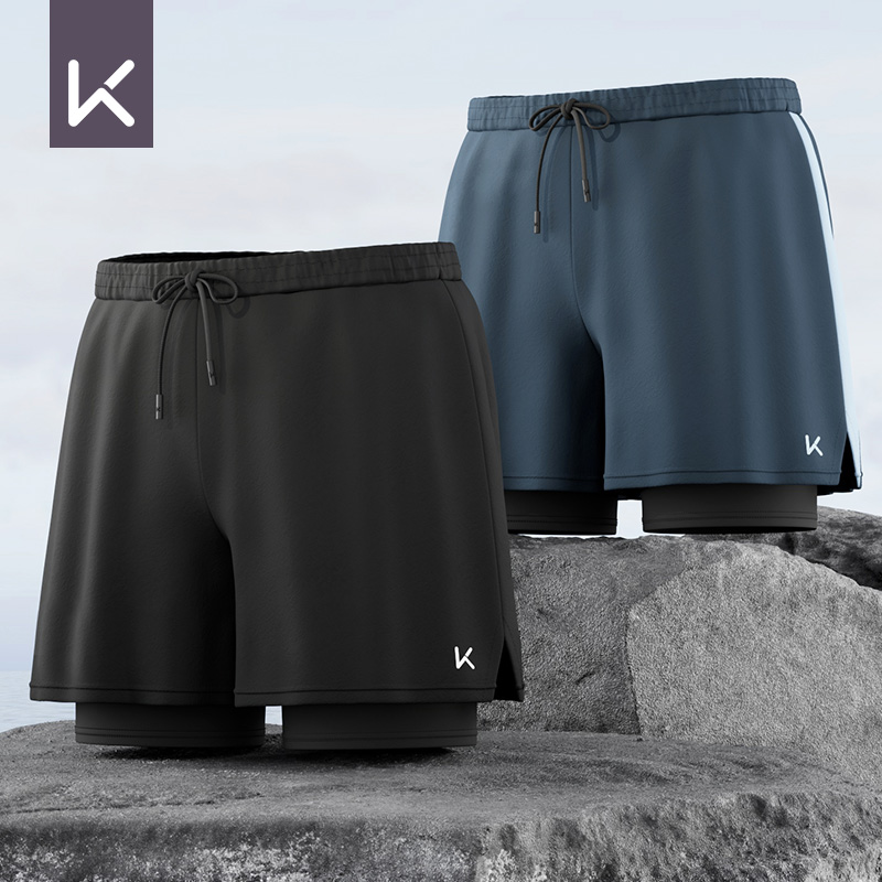 [Buy 3 get 1 free] Swimming trunks men's new double-layer bright color anti-embarrassment surfing beach pants sunscreen long-sleeved swimsuit set