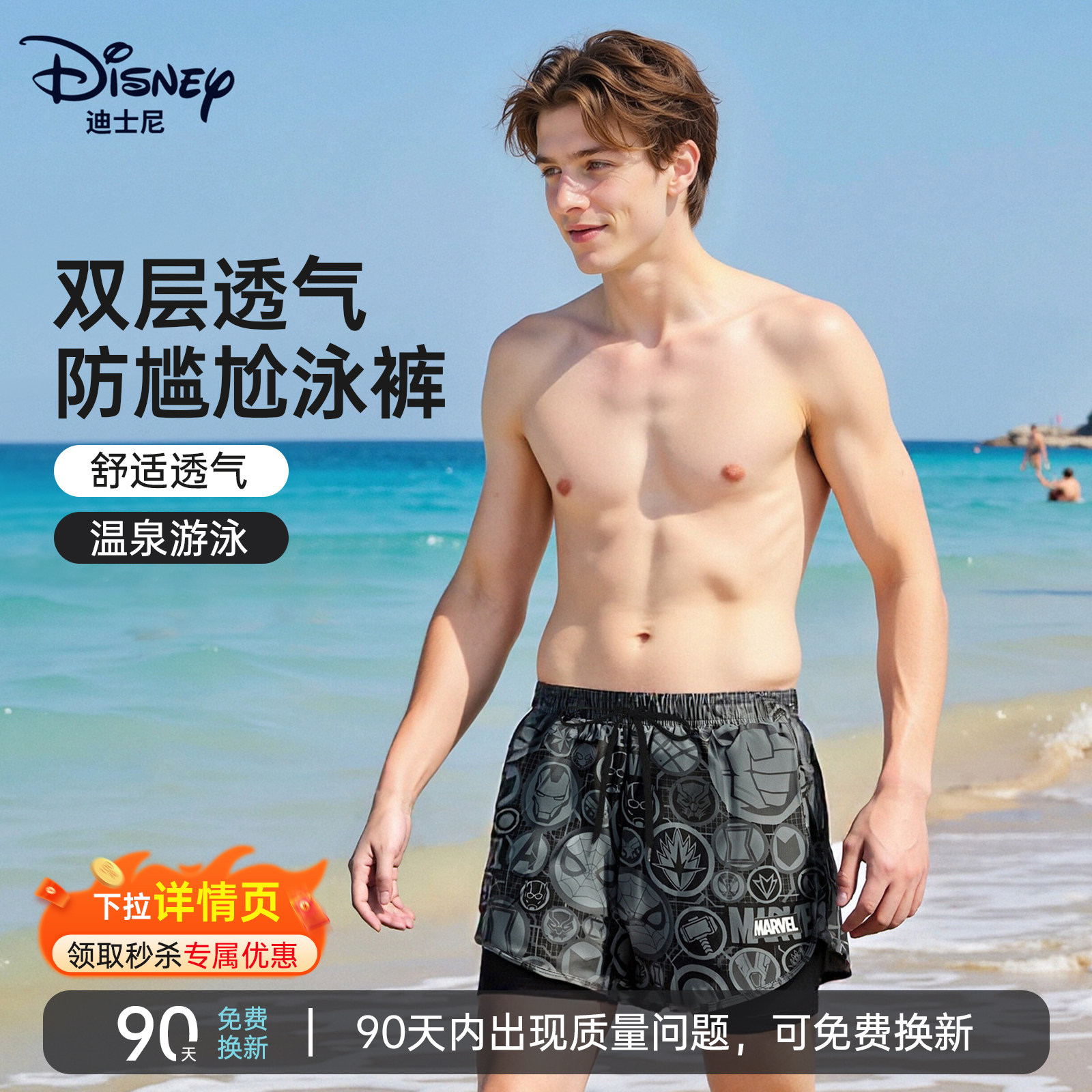 Marvel Swimming Trunks Men's Men's Adult Teen Hot Spring Swimsuit Double-layer Anti-Embarrassment Boxer 2025 New Model
