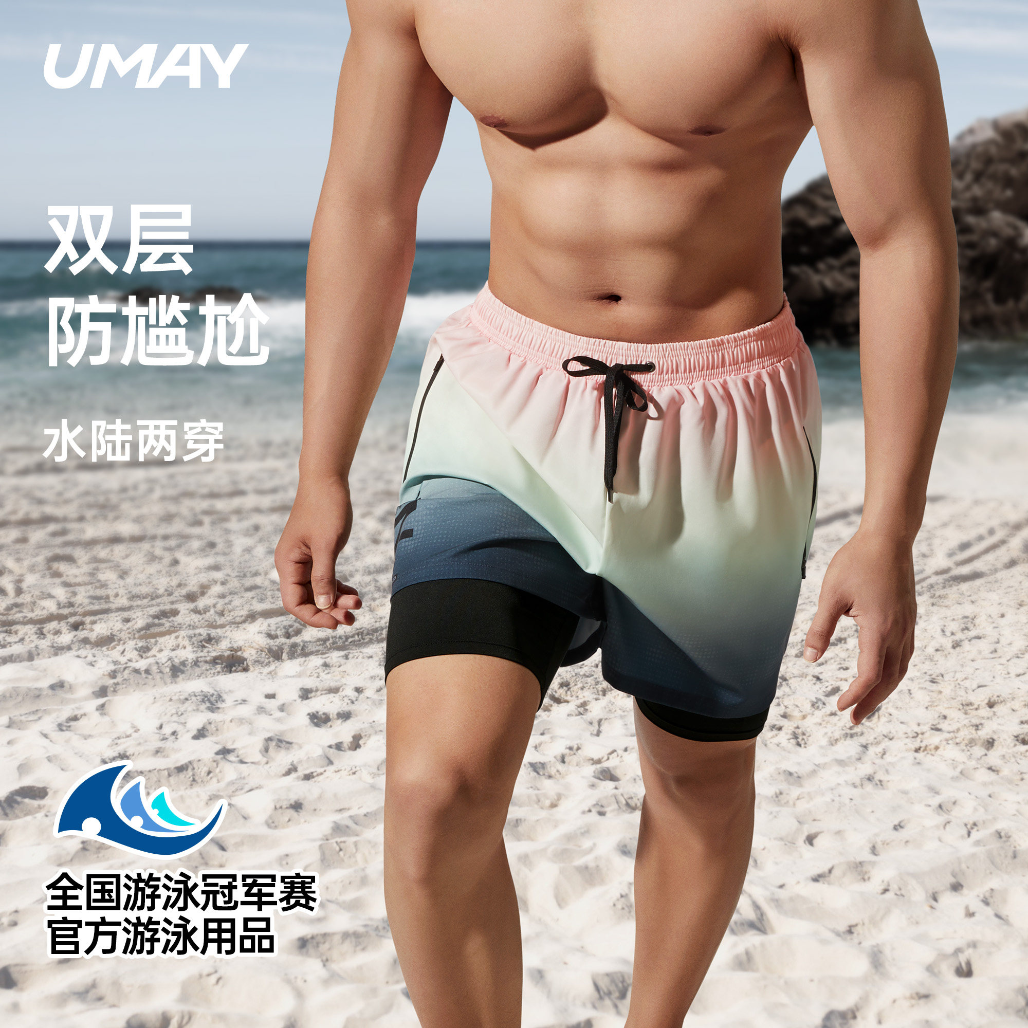 Swimming Trunks Men's Anti-Embarrassment 2025 New Adult Hot Spring Double-layer Quick-Drying Plus Size Swimming Trunks Full Equipment