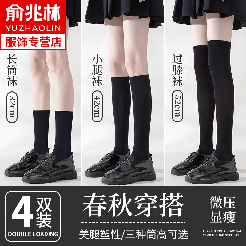Black socks, women's mid-leg socks, spring and autumn, autumn and winter piles of long leg socks JK pressure slim leg calf socks summer