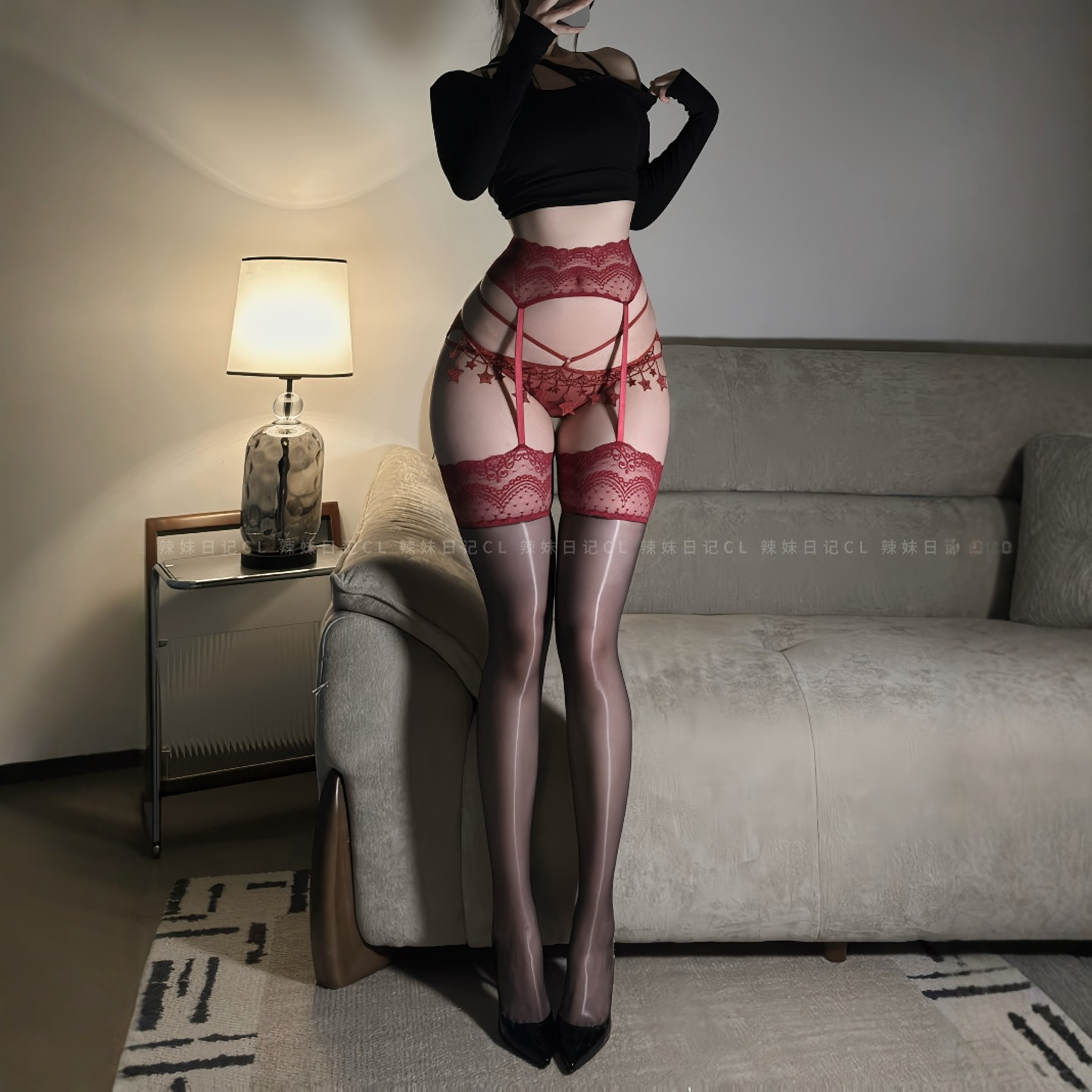 Laimi "Silky 0.01" sexy stockings women's spring and autumn thin retro lace non-slip high-top over-the-knee socks