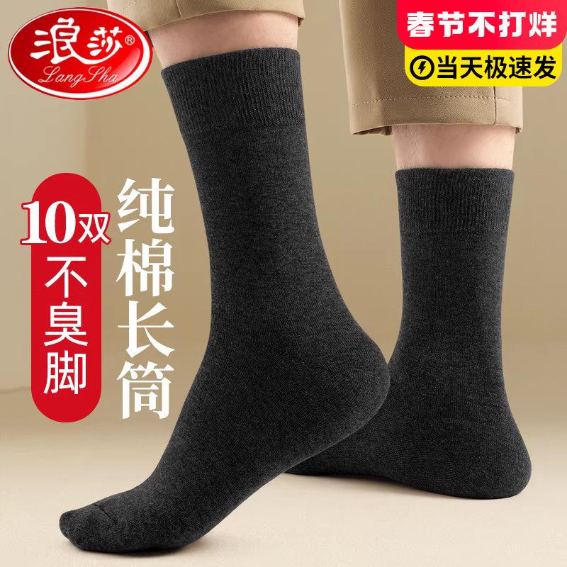 Langsha stockings men's autumn and winter cotton cotton odor-proof sweat-absorbing mid-leg black high socks men's stockings