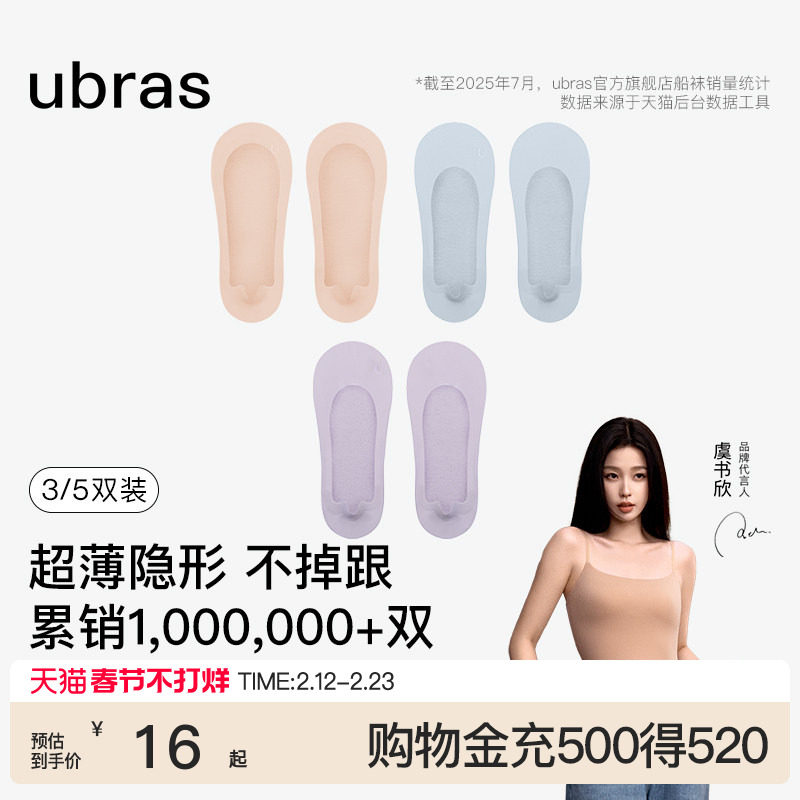Yu Shuxin's same UBRAS small cool breeze invisible boat socks women's shallow high heels socks are non-slip, anti-odor and do not fall off