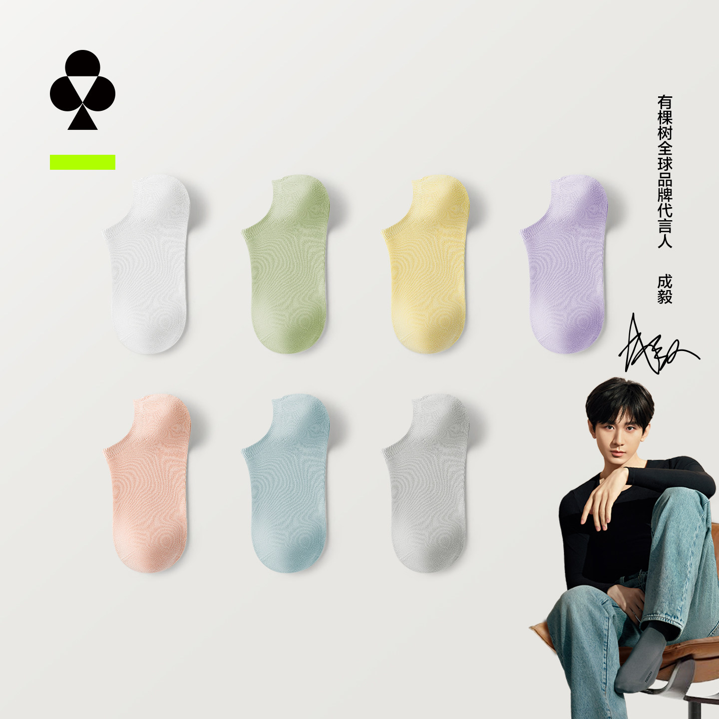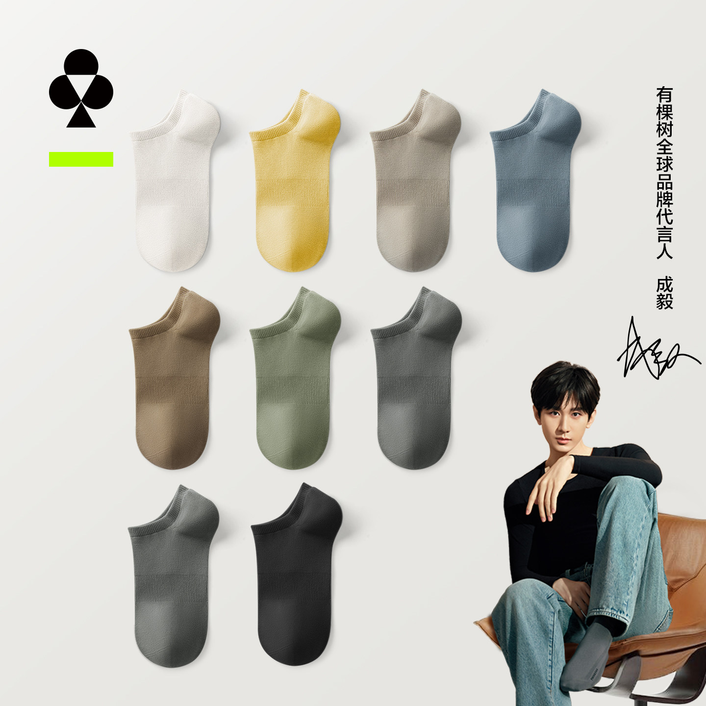 【10A Antibacterial】Youke Tree Socks Men's Boat Socks Pure Cotton Anti-Odor and Non-Slip Summer Thin Shallow Invisible Socks
