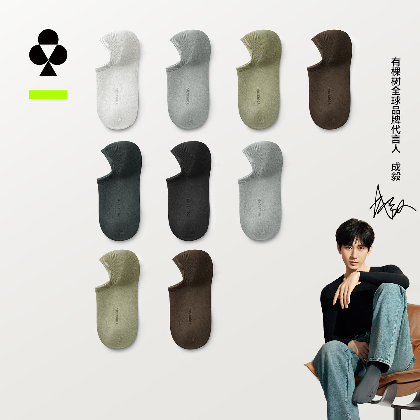 【Seaweed Deodorizing】Youke Tree Socks Men's Boat Socks Antibacterial Cotton Socks Summer Thin Odor-Absorbing Sweat Breathable Summer Style