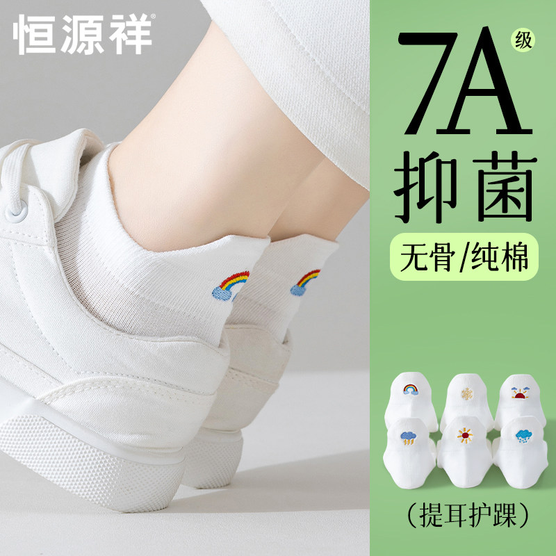 Hengyuanxiang socks women's summer thin cotton boneless non-falling heel boat socks summer antibacterial and breathable white socks