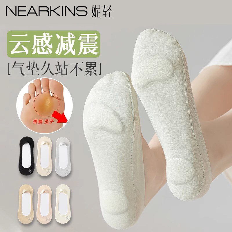 Boat socks women's summer thin non-slip heel shockproof air cushion sole pure cotton invisible pumps high heels single shoe socks