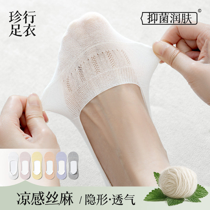 Mulberry silk linen socks women's boat socks summer thin cool antibacterial invisible non-slip white mesh shallow cotton socks