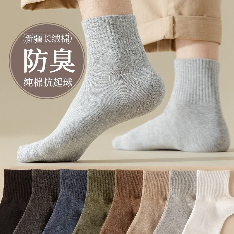 Socks for men autumn and winter new breathable sweat-absorbing anti-odor antibacterial cotton socks black sports mid-toe socks for men