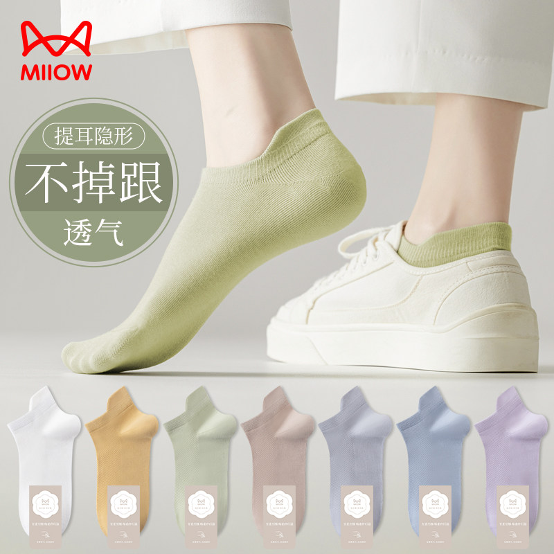 Cat socks, women's summer thin cotton socks, shallow boneless cotton socks, spring and autumn mid-leg socks, women's anti-odor boat socks