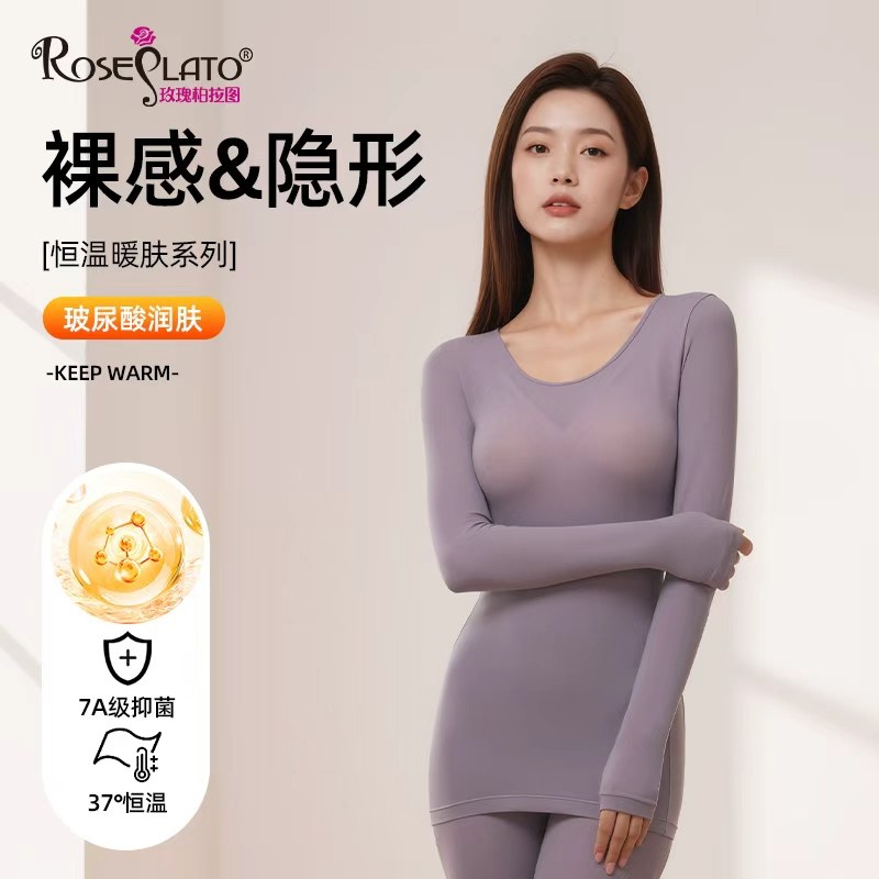 Ultra-thin skin underwear women's hyaluronic acid skin beauty thermal underwear invisible base shirt autumn clothes and pants set autumn and winter new style
