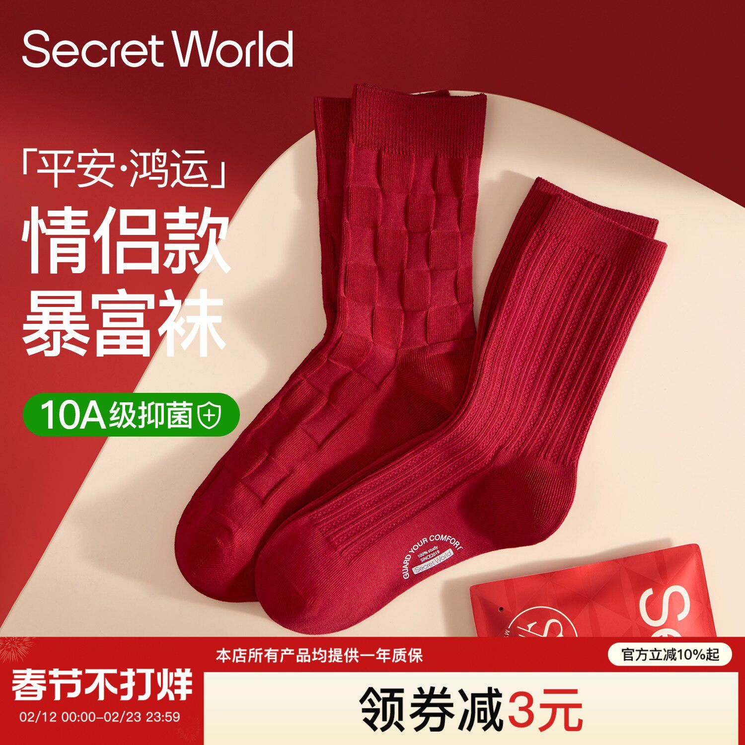 Natal Year Red Socks Men and Women Year of the Horse Pure Cotton Socks Couple Wedding Socks A pair of New Year's cotton good luck socks