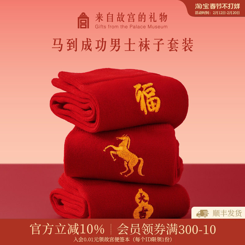 Forbidden City Taobao|Fuma Red Socks Set Horse to Success Men's Red Socks Gift Box Natal New Year New Year Gift