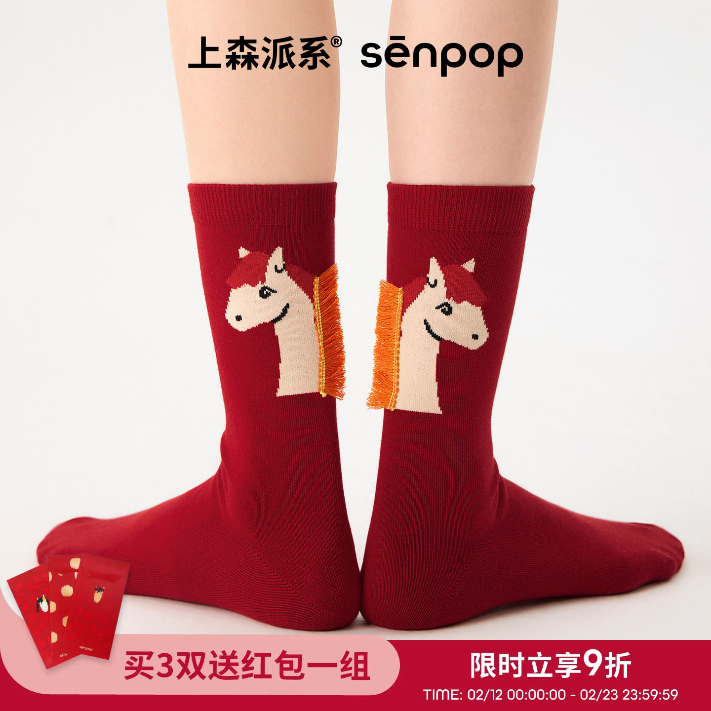 Shangmori Red Socks 2026 Year of the Horse Safety Socks Natal Year Gift Red Socks New Year's Mid-Tube Socks Gift Box Cotton Socks