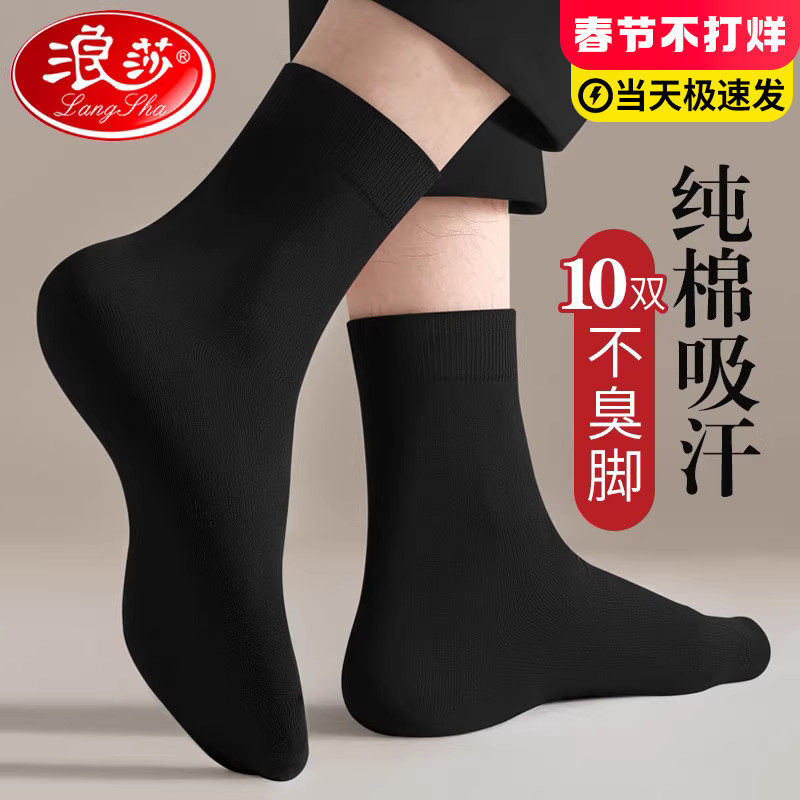Langsha cotton socks men's mid-length autumn and winter thickened anti-odor and sweat-absorbing cotton spring and autumn men's black business stockings
