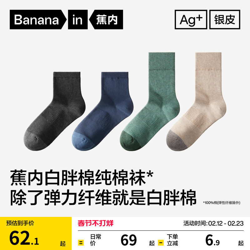 10A antibacterial socks men's autumn and winter pure cotton yarn socks sweat-absorbing and odor-proof white cotton socks spring men's stockings