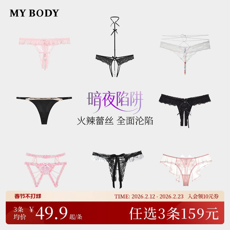 3 pieces 159|Shopping mall same MYBODY pearl panties sexy lace hot triangle crotch open thong