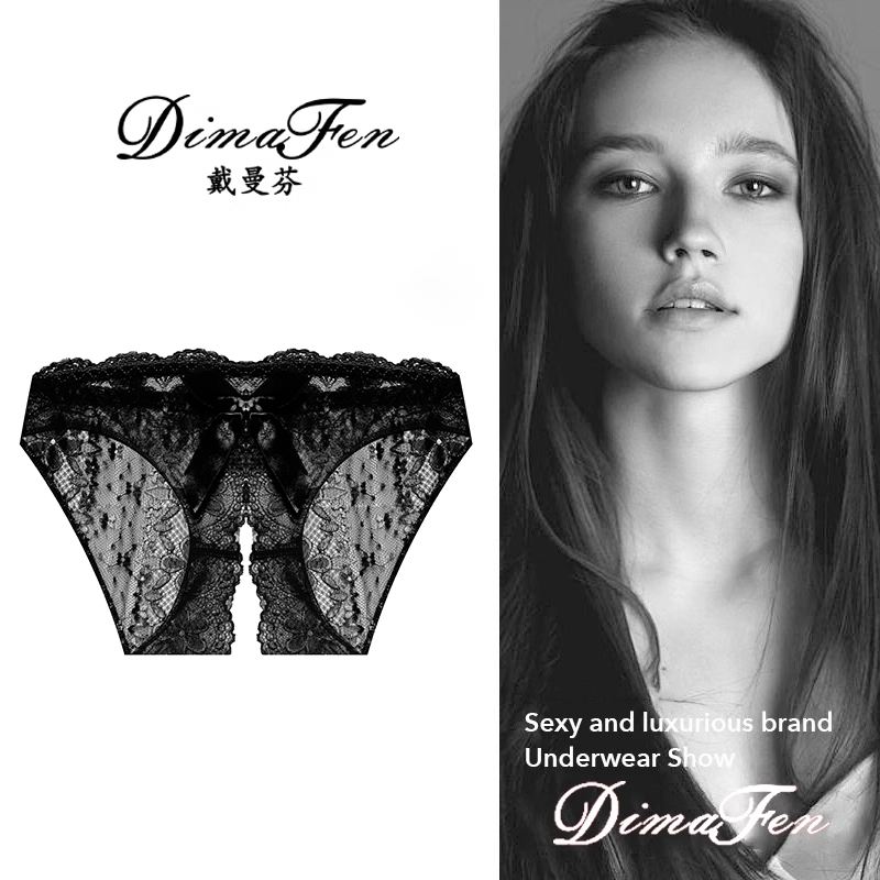 【Dai Manfen】Sexy trendy seamless briefs female couple lace sex open crotch no-take off mesh thong