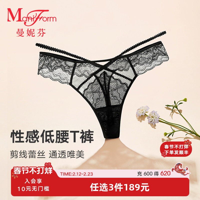 Manifine is light and breathable, low-rise T-pants, thongs, sexy lace women's panties, comfortable underwear 20612404
