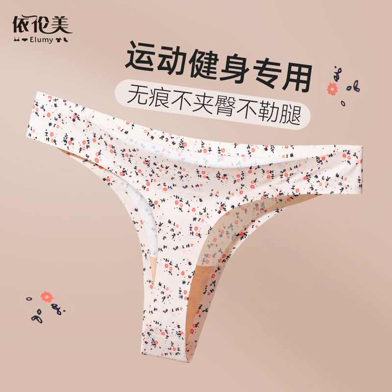 Thong Women's Seamless Panties Sports Fitness Yoga White Small Floral Low Waist Sexy Ice Silk Triangle T-Pants