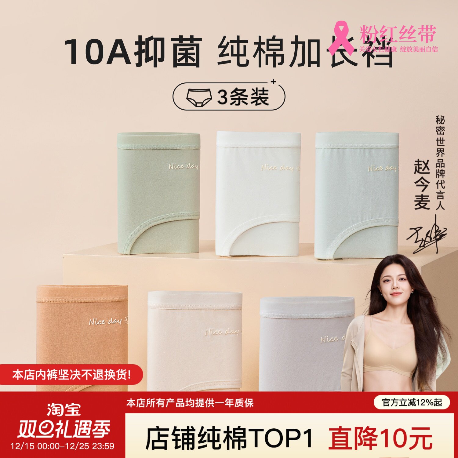 【Women's Yanjie Brand R&D】Herbal First Color Underwear Women's Pure Cotton Lactic Acid Antibacterial Crotch Extended Crotch Briefs 2025