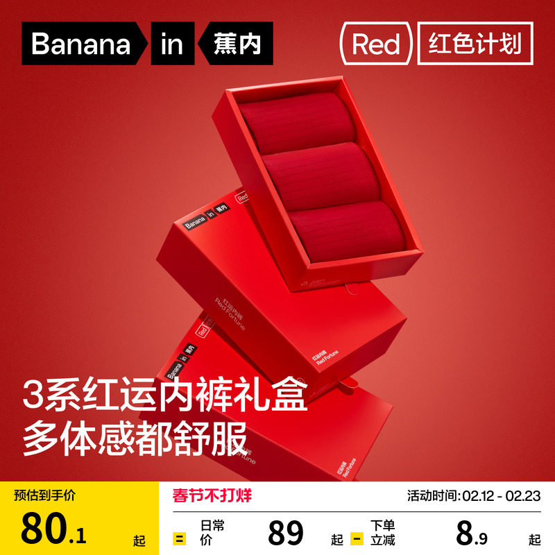 3 pieces|banana red plan 3 series women's underwear pure cotton big red natal year wedding women's briefs new style