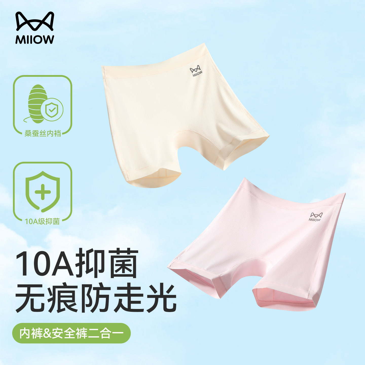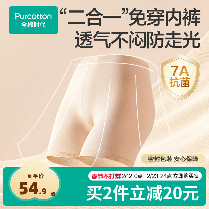 Herbal first color pure cotton boxer underwear women's 10A antibacterial safety pants Class A threaded cotton 2-in-1 boxer pants