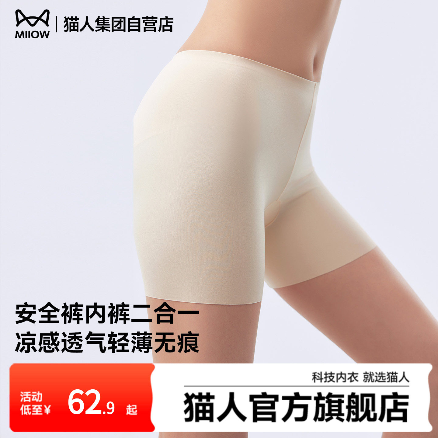 Cat man safety pants, underwear two-in-one, women's thin outer wear, bottoming, abdominal lift, antibacterial undercrotch, anti-exposure shorts