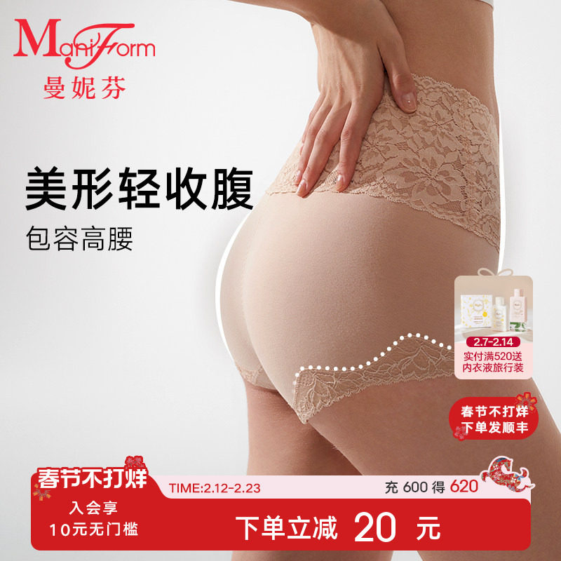 Manniphine lace high-waisted hip lift shorts women's pure cotton crotch comfortable and beautiful light tummy tuck panties 20710935