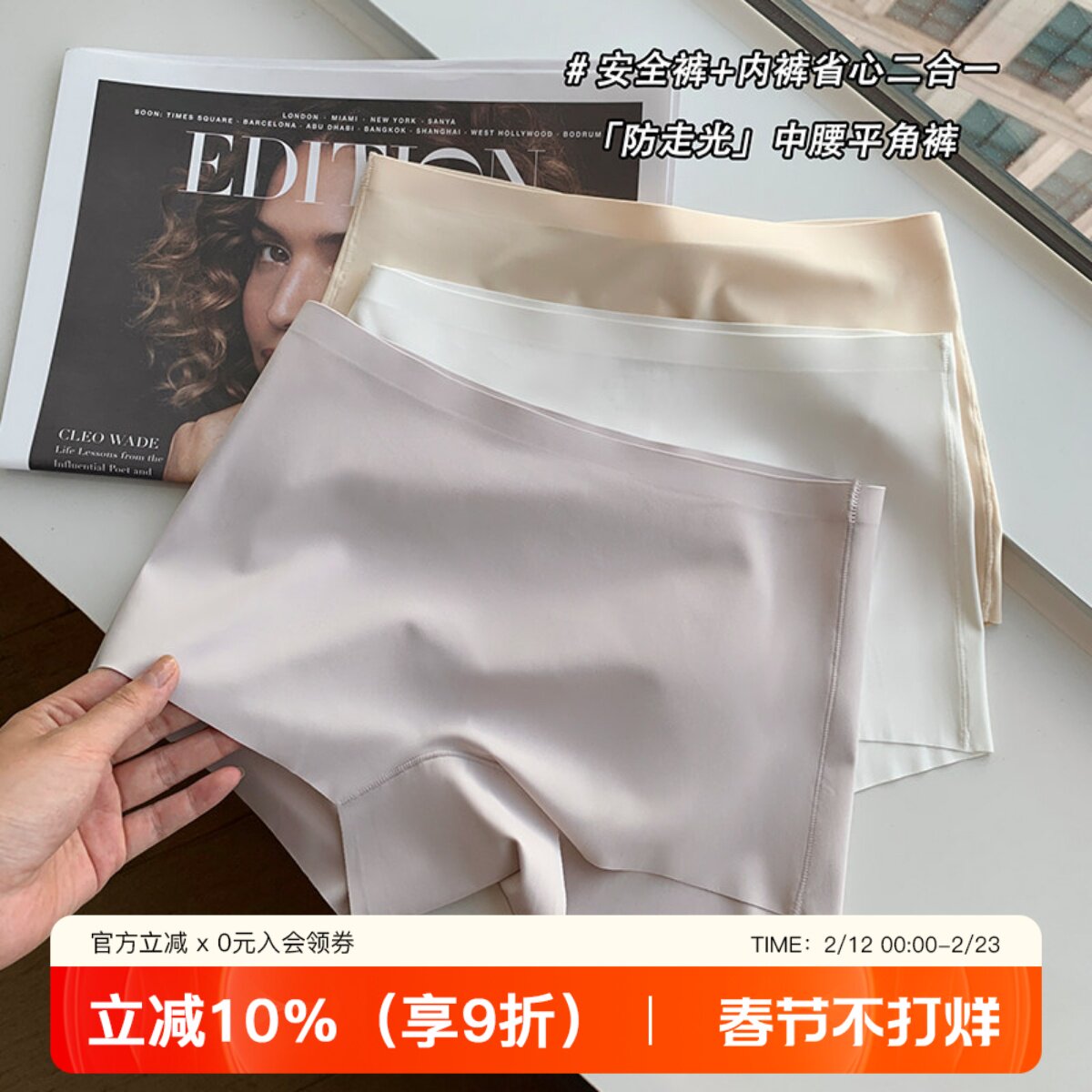 Nude non-marking safety pants, women's 2-in-1 underwear, women's anti-shine, non-curled, mid-rise thin leggings, boxers
