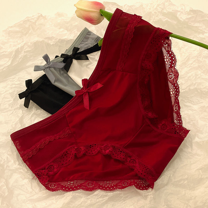 Pure desire without a trace red ice silk sexy lace low waist temptation panties briefs girl bow natal girl